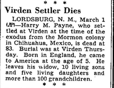Obituary of Harry M Payne.